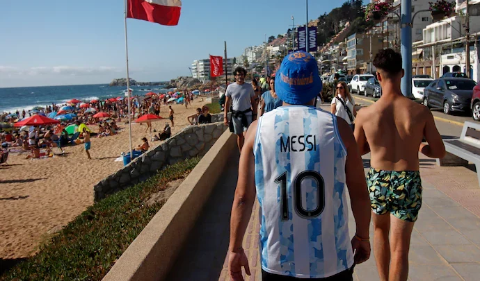 el otro lado de la vereda, durante el mes pasado la salida transitoria del país de argentinos alcanzó 1.341.800 viajes, de los cuales 693.600 miles fueron turistas y 648.200 fueron excursionistas, un crecimiento del 76,4%.El 80,7% de los destinos elegidos por los turistas locales fueron de países limítrofes, entre los que se destacaron Chile, con 28,0%; Brasil, con 22,6%; y Uruguay, con 15,6%. El 52,6% de los turistas residentes salió del país por la vía terrestre; el 34,0%, por vía aérea; y el 13,4%, a través de la vía fluvial/marítima. Los pasos relevados por la ETI representaron el 46,3% del turismo emisivo.En diciembre, se registró un saldo negativo de 390,3 miles de visitantes internacionales por todas las vías de acceso al país. Este resultado fue debido a los saldos negativos de 278,3 miles de excursionistas y de 112,0 miles de turistas.