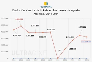 Entre el 1 y el 30 de septiembre de 2024 se cortaron 1.678.686 en los cines argentinos, según cifras fiscalizadas por Ultracine. La asistencia disminuyó un 45% respecto al año pasado.