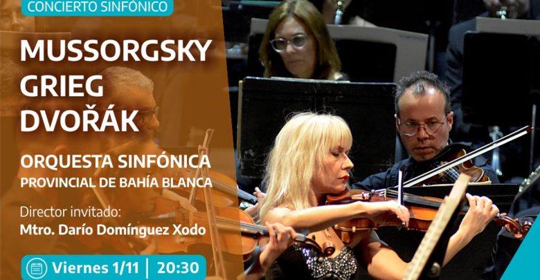 La Orquesta Sinfónica Provincial brindará un concierto sinfónico, el viernes 1 de noviembre a las 20:30 en el Teatro Municipal de Bahía Blanca. Bajo la dirección del maestro invitado Darío Domínguez Xodo, se interpretará “Una noche en Monte Calvo” de Modest Mussorgsky, la “Suite N°2 de Peer Gynt, Op.55” de Edvard Grieg y la “Sinfonía N°7 en re menor” de Antonín Dvořák. Esta actividad forma parte de la agenda del Instituto Cultural de la Provincia de Buenos Aires.